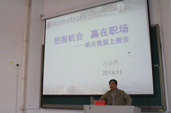 11月20日下午2点,600全讯白菜学工部副部长、就业指导中心副主任、高级职业导师方志勇老师在4J-101开办了一场以“把握机会,赢在职场”为主题的毕业生就业指导讲座。